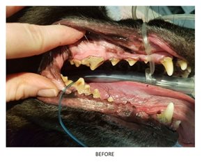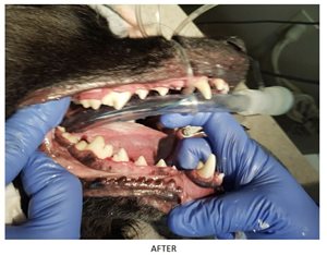 It was Bentley’s first COHAT. Previously, he had minimal at-home preventative dental care. As seen in the photos, he had significant tarter build up on his teeth but minimal gingivitis or inflammation of his gums. His owner reported halitosis or “bad breath” which is a consequence of dental disease (imagine if we didn’t brush our teeth for seven years!).