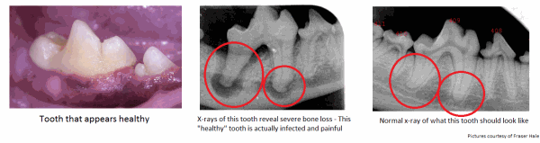 During a COHAT, the patient’s teeth are carefully examined for signs of disease. Dogs and cats can’t tell us when they have a sore tooth, and often we can’t see dental disease by looking at the tooth directly, as mostly occurs under the gumline. Our pets will often continue eating as normal and learn to live with the pain and headaches that occur with dental disease. The best way to make sure our pets are pain-free is to use a dental probe 360 degrees around each tooth to detect pockets. It will help your veterinarian to indicate bone loss and/or infection surrounding the tooth. Full mouth x-rays are needed to examine the tooth root for any defects that are not detectable by probing.